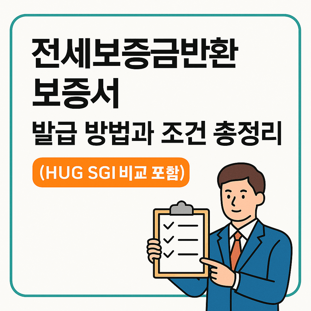 전세보증금반환보증서는 임대차 계약 종료 시 보증금을 안전하게 돌려받기 위한 필수 제도입니다. HUG·SGI 보증서 비교, 신청 방법, 조건, 보증료, 필요서류까지 한 번에 확인하세요.